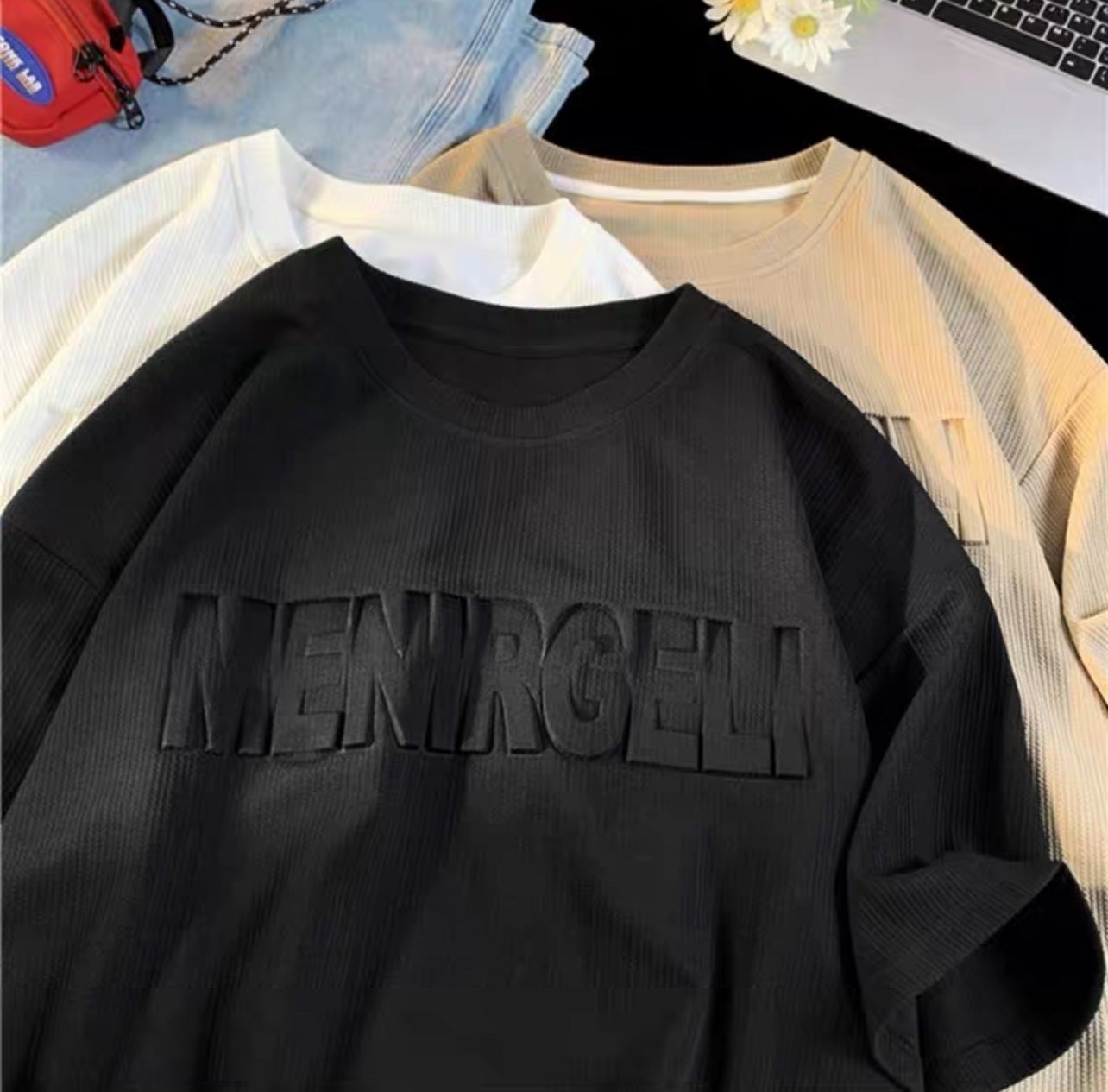 Deal Áo thun Unisex chữ nổi MENIRGELI chất liệu tăm lạnh mát mẻ Áo phông nam nữ tay lỡ oversize form rộng trẻ trung năng động
