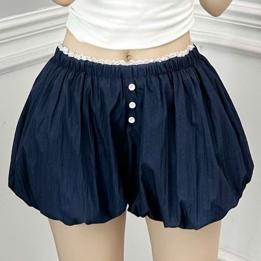 Deal Quần Short Bí Phồng Cạp Cao Viền Ren Milasu Quần Đùi Bo Chun Ngắn Chất Gió Thoáng Mát Mềm Mại 446