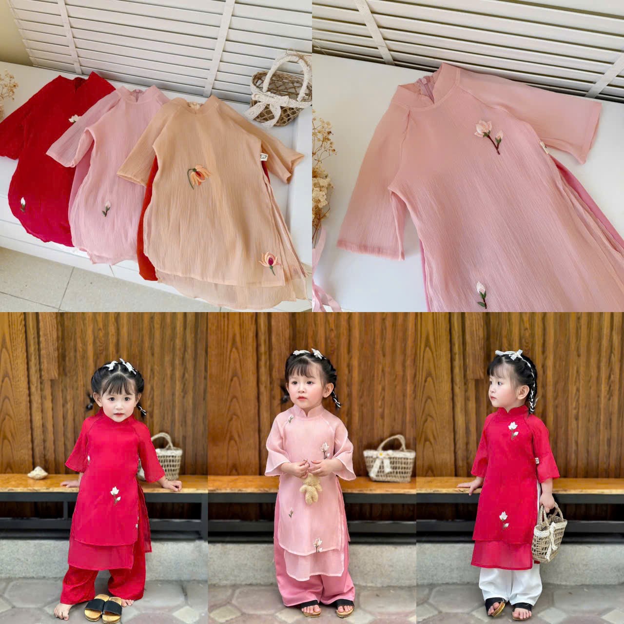 Deal Sét áo dài cách tân 4 tà cho bé gái Mz732, Áo dài tết 2025 cho bé gái